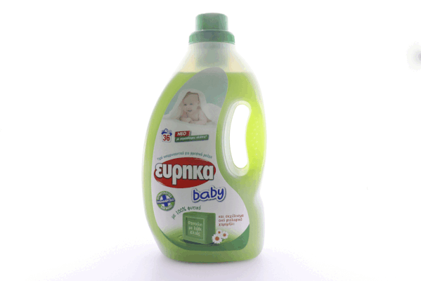 Νέο Εύρηκα baby με περισσότερες πλύσεις. Το Εύρηκα baby είναι ένα απορρυπαντικό σχεδιασμένο για τα βρεφικά ρούχα όμως είναι κατάλληλο και για τα ρούχα όλης της οικογένειας. Δερματολογικά ελεγμένο και υποαλλεργικό, εγγυάται την απαλή φροντίδα των ρούχων ενώ παράλληλα τα περιποιείται, χάρη στο 100% φυτικό σαπούνι με λάδι ελιάς και το εκχύλισμα από βιολογικό χαμομήλι. Όμως παράλληλα, καθαρίζει αποτελεσματικά τα ρούχα και απομακρύνει τους δύσκολους λεκέδες. Καθαρίζει σαν Εύρηκα, περιποιείται σαν χάδι.