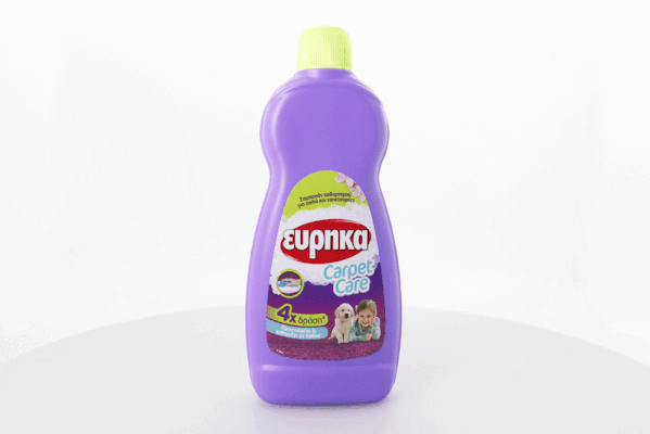 Σαμπουάν Καθαρισμού για χαλιά και ταπετσαρίες με 4x δράση. ... για σπίτια με ζωντάνια!Το Σαμπουάν χεριού Εύρηκα Carpet Care με 4x δράση, καθαρίζει αποτελεσματικά χαλιά, ταπετσαρίες, μοκέτες, καναπέδες και άλλες υφασμάτινες επιφάνειες που πλένονται. Καθαρίζει σε βάθος και εξαφανίζει τους δύσκολους λεκέδες, ενώ χάρη στην ειδική του σύνθεση απενεργοποιεί τα μόρια που προκαλούν δυσοσμία και έτσι εξουδετερώνει τις δυσάρεστες οσμές χωρίς απλώς να τις καλύπτει. Στεγνώνει χωρίς να κολλάει και παράλληλα προστατεύει τα χρώματα και το ύφασμα. Χρησιμοποιήστε το και απολαύστε πραγματικά καθαρά χαλιά, όλο ζωντάνια, με ένα άρωμα φρεσκάδας που διαρκεί.