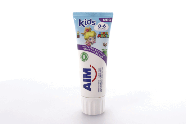Νέα AIM οδοντόκρεμα 0-6 ετών, με γεύση φρούτων, προσφέρει μακροχρόνια προστασία κατά της τερηδόνας.