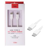 OSIO ΚΑΛΩΔΙΟ ΦΟΡΤΙΣΗΣ ΚΑΙ ΣΥΓΧΡΟΝΙΣΜΟΥ ΑΠΟ TYPE C ΣΕ TYPE C (1,2m) - (ΛΕΥΚΟ) (OTU-6012W)