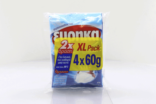 Στο πλυντήριο προσθέστε μαζί με το απορρυπαντικό 30γρ για ελαφρώς λερωμένα ρούχα, 60γρ για κανονικά λερωμένα ή 90γρ για περισσότερο λερωμένα. Στο χέρι 60γρ μαζί με απορρυπαντικό διαλύστε σε 10 λίτρα νερό και μουλιάστε για 1 ώρα. Για πολύ λερωμένα αφήστε όλο το βράδυ. Πλύνετε και ξεβγάλτε καλά.