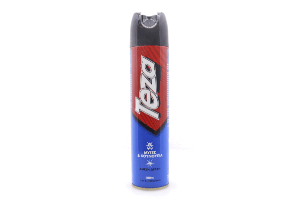 Το TEZA SPRAY για μύγες και κουνούπια καταπολεμά γρήγορα και αποτελεσματικά τα ιπτάμενα έντομα: μύγες, κουνούπια, φλεβοτόμους (σκνίπες), σε κλειστούς χώρους (σπίτια, γραφεία, κ.λπ.). Ψεκασμός 3-8 δευτερολέπτων είναι αρκετός για την καταπολέμηση των ιπτάμενων εντόμων σε χώρο 4 κυβικών μέτρων.