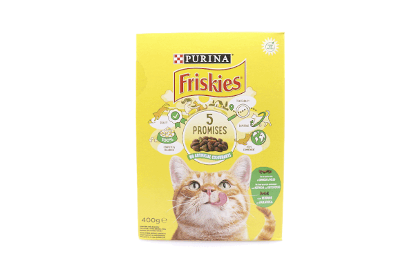 Ξηρή Τροφή Γάτας FRISKIES ΚΟΥΝΕΛΙ, ΚΟΤΟΠΟΥΛΟ & ΠΡΟΣΘΕΤΑ ΛΑΧΑΝΙΚΑ 400g. Οι γάτες είναι εξερευνητές από τη φύση τους, αντιλαμβάνονται τα πάντα στο περιβάλλον τους. Αυτό είναι που τις κάνει τόσο γοητευτικά και ενεργά μέλη της οικογένειας. Γι' αυτό οι ειδικοί της Purina® έχουν δημιουργήσει τα Friskies® για ενήλικες γάτες: νόστιμη, ποιοτική τροφή για γάτες, που θρέφει το αστείρευτο ενδιαφέρον του εξερευνητή σας για τον κόσμο.