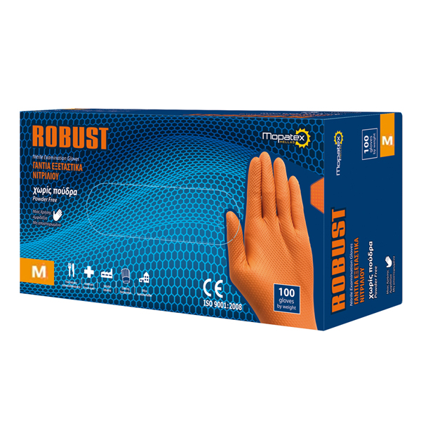 ROBUST ΓΑΝΤΙΑ ΝΙΤΡΙΛΙΟΥ ΠΟΡΤΟΚΑΛΙ (100τεμ.) - (MEDIUM)(ΧΩΡΙΣ ΠΟΥΔΡΑ) - (ΓΙΑ ΣΚΛΗΡΕΣ ΧΡΗΣΕΙΣ)